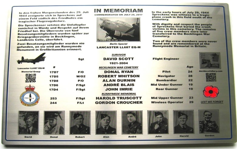 ‘Somebody’s thinking about these boys’: New memorial in German town to honour doomed RCAF bomber crew Memorial to Lancaster LL687 will mark the spot where bomber fell in 1944, killing 7 Canadian airmen By Stephen Smith, CBC News Posted: Jul 09, 2017 6:00 AM ET Last Updated: Jul 09, 2017 1:27 PM ET Audrey Somers has done her best over the last 73 years to put the death of her 23-year-old brother Harold behind her, but it’s caught up with her yet again. ‘That day was like a scythe’: Montreal and the casualty lists of Vimy…