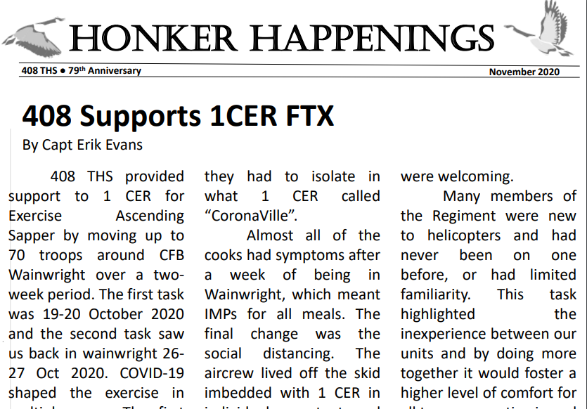 408 Squadron flies the C-130Bby Captain Joel Possberg Within 1 Canadian Mechanized Brigade Group, 408 Tactical Helicopter Squadron often stands out: blue berets in a sea of green. We’re the only Royal Canadian Air Force presence at CFB Edmonton, the former RCAF Station Namao, which hosted some of the fixed-wing aircraft our squadron formerly flew. We have been operating helicopters for so long now – nearly 50 years – that day to day memories of our former time as a “true blue air force” squadron have more or less been…