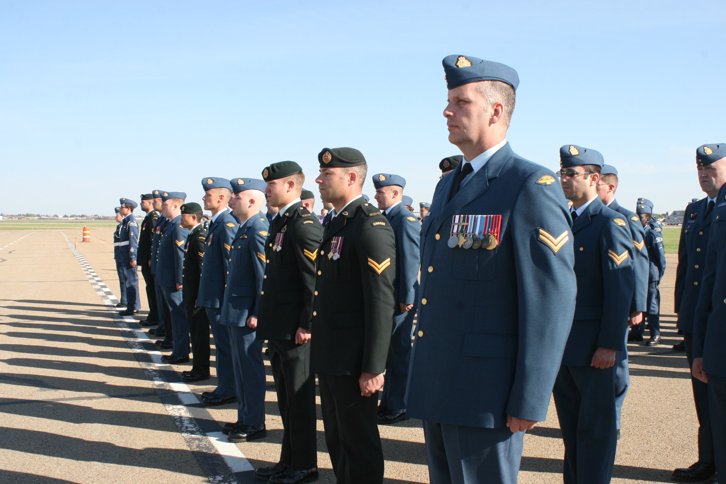 The parade was attended by Canadian veterans of previous conflicts. Those on parade were current members of the Canadian Armed Forces from 408 Tactical Helicopter Squadron, as well as members from local Air Cadet squadrons 504, 395, 12, 699, 533, and 812.
